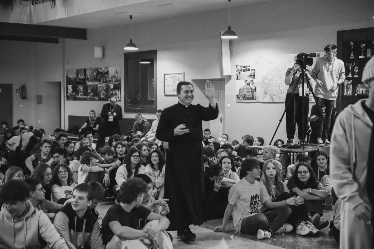 Spotkanie Młodzieży Pijarskiej swoją tradycją sięga 2001 roku, a swój początek ma w Przeglądzie Piosenki Pijarskiej, który dalej jest częścią programu. Co roku młodzież tworzy swoje utwory i dopasowuje je tematycznie do hasła wydarzenia. Tak było również w tym roku. Tuż po rozmowie z o. Tomaszem Jędruchem, który przypomniał początki SMP, rozpoczął się Przegląd. Pierwszy dzień zakończył się wyprowadzeniem do spowiedzi, które poprowadził o. Tomasz Abramowicz, wieloletni organizator SMP.