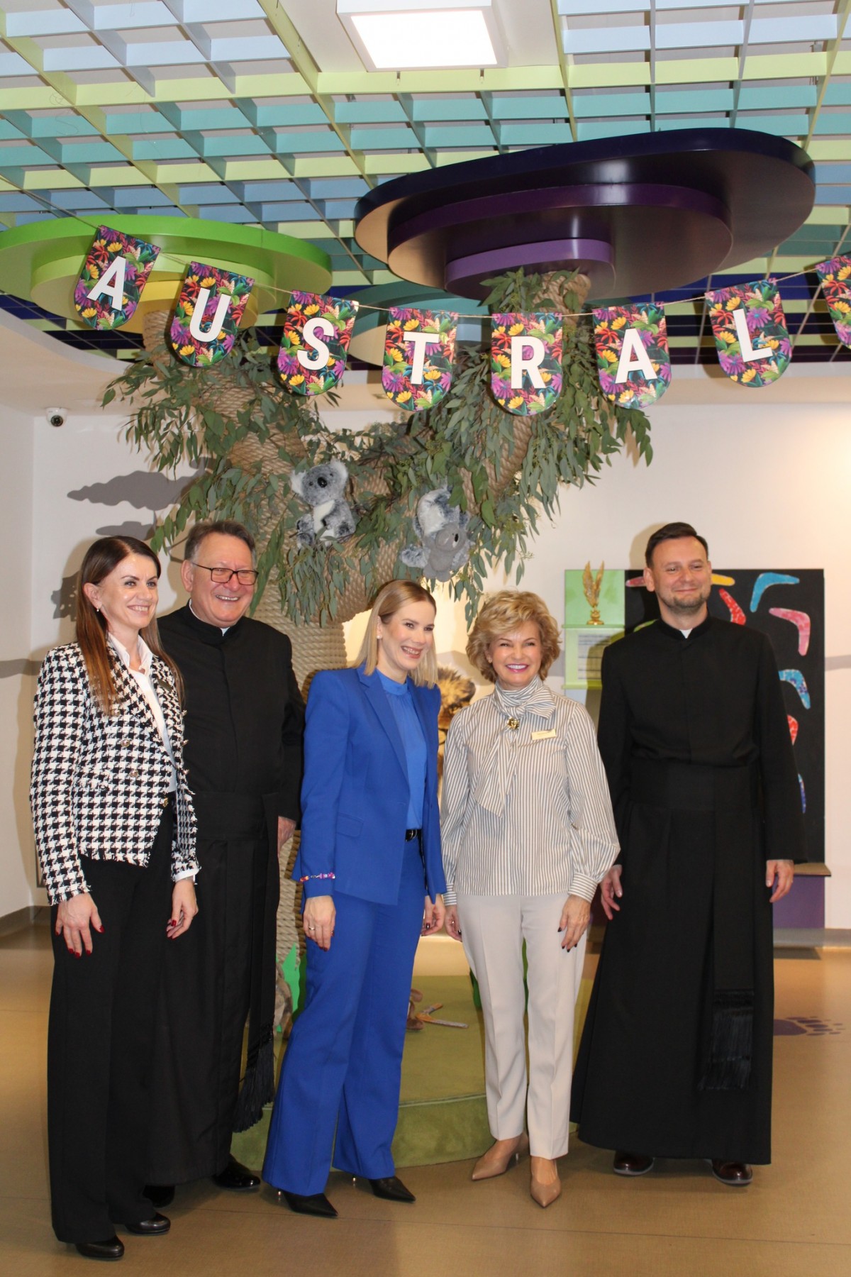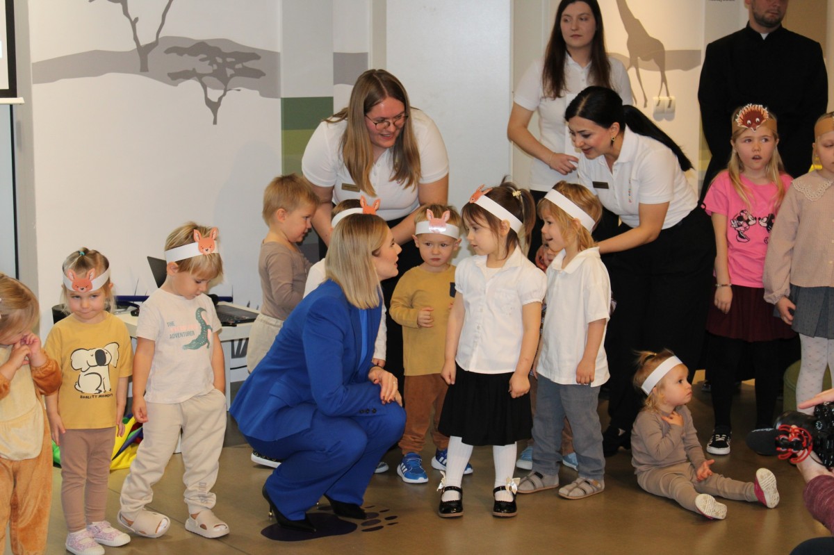 Następnie dzieci z grupy Pingwiny zadawały małżonce Prezydenta Polski pytania. Po pytaniach przedszkole zaśpiewało piosenkę o św. Józefie Kalasancjuszu pt. „W dalekiej Hiszpanii”. Następnie Pierwsza Dama uczestniczył w warsztatach kulinarnych z grupą Pandy, gdzie wspólnie z dziećmi robiła ciasteczka w kształcie kangurków. Na zakończenie delegacja dzieci podziękowała Małżonce Prezydenta Polski Pani Marcie Nawrockiej za wizytę, wręczając własnoręcznie wykonaną laurkę oraz bukiet kwiatów.