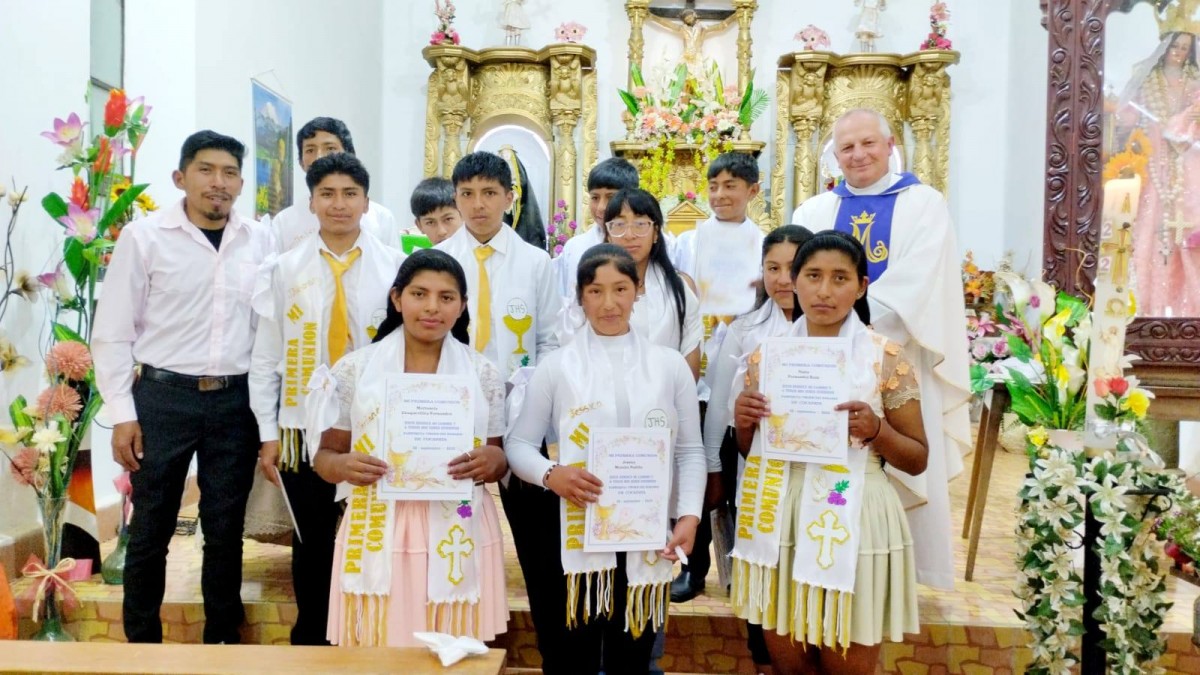 28 września 2025 r. w naszej parafii Panny Różańcowej Cocapata prowadzonej przez ojców pijarów w internacie świętowaliśmy I Komunię św. grupy młodzieży, a następnie wszyscy zgromadzeni dzielili się obiadem i tortem. Gratulujemy wszystkim i dziękuję wszystkim niech Bóg was błogosławi.