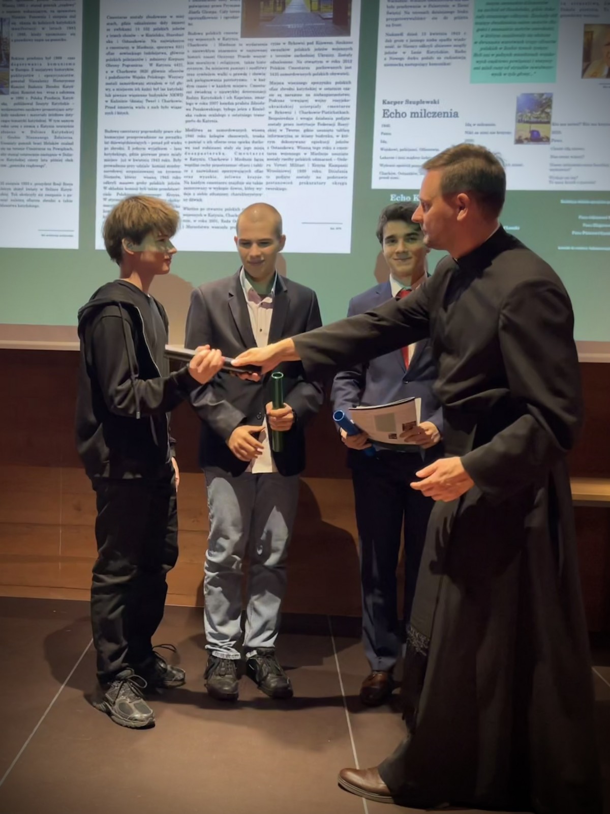 Nagrody laureatom wręczyli dyrektorzy instytucji współorganizujących konkurs: dr Ernest Wyciszkiewicz – dyrektor Centrum Mieroszewskiego, Sebastian Karwat – Dyrektor Muzeum Katyńskiego oraz o. Rafał Roszer – Prezes Stowarzyszenia Parafiada. Nagrodzeni zostali uczniowie ze szkół podstawowych i ponadpodstawowych z Konieczkowej, Lasek, Lublina, Leszna i Piastowa, którzy kreatywnie podeszli do tematu i zachwycili swoimi gazetami jury. Zasiadali w nim: Adrianna Gajdziszewska, Anna Wesołowska, Anna Putkiewicz, Sebastian Karwat i dr Maciej Wyrwa.