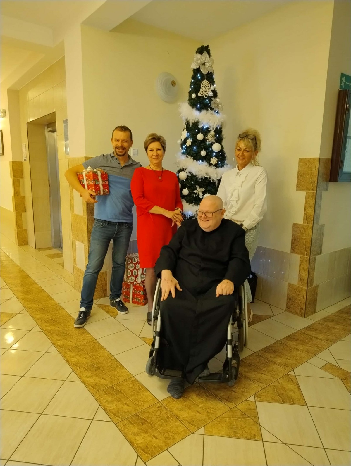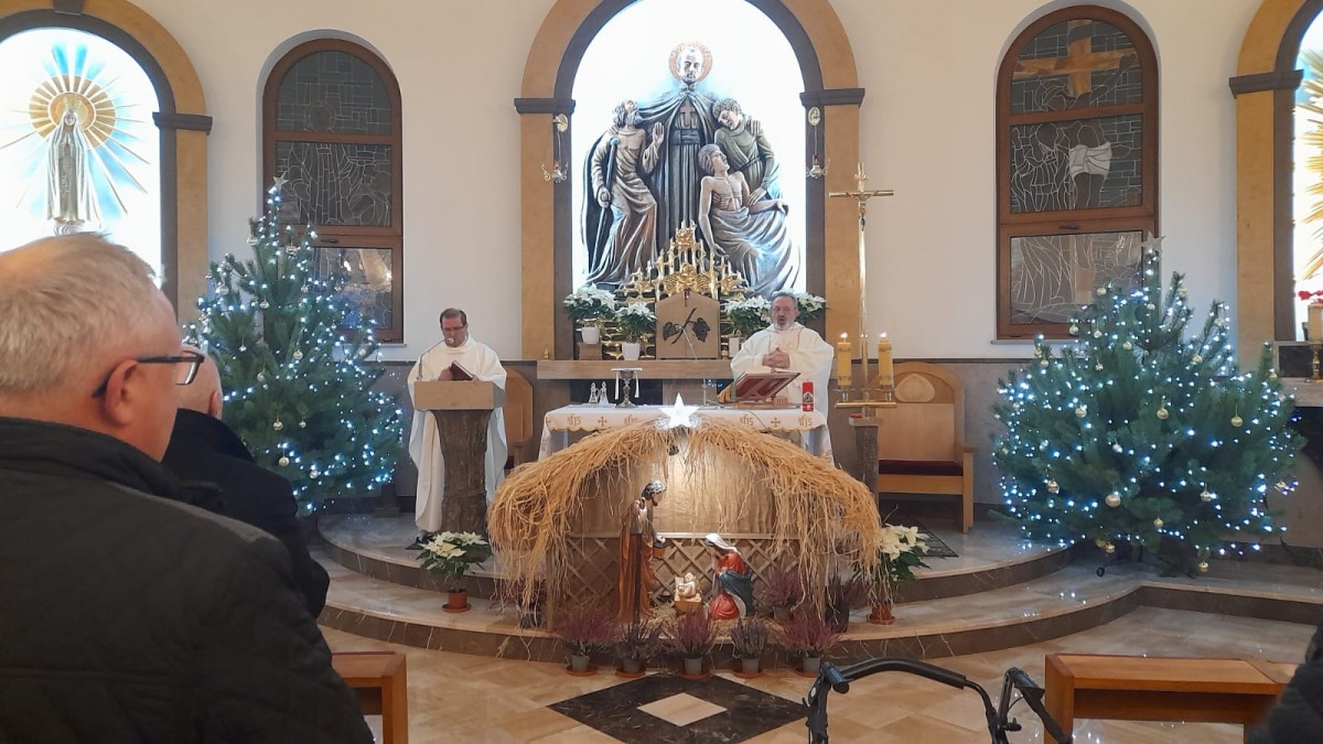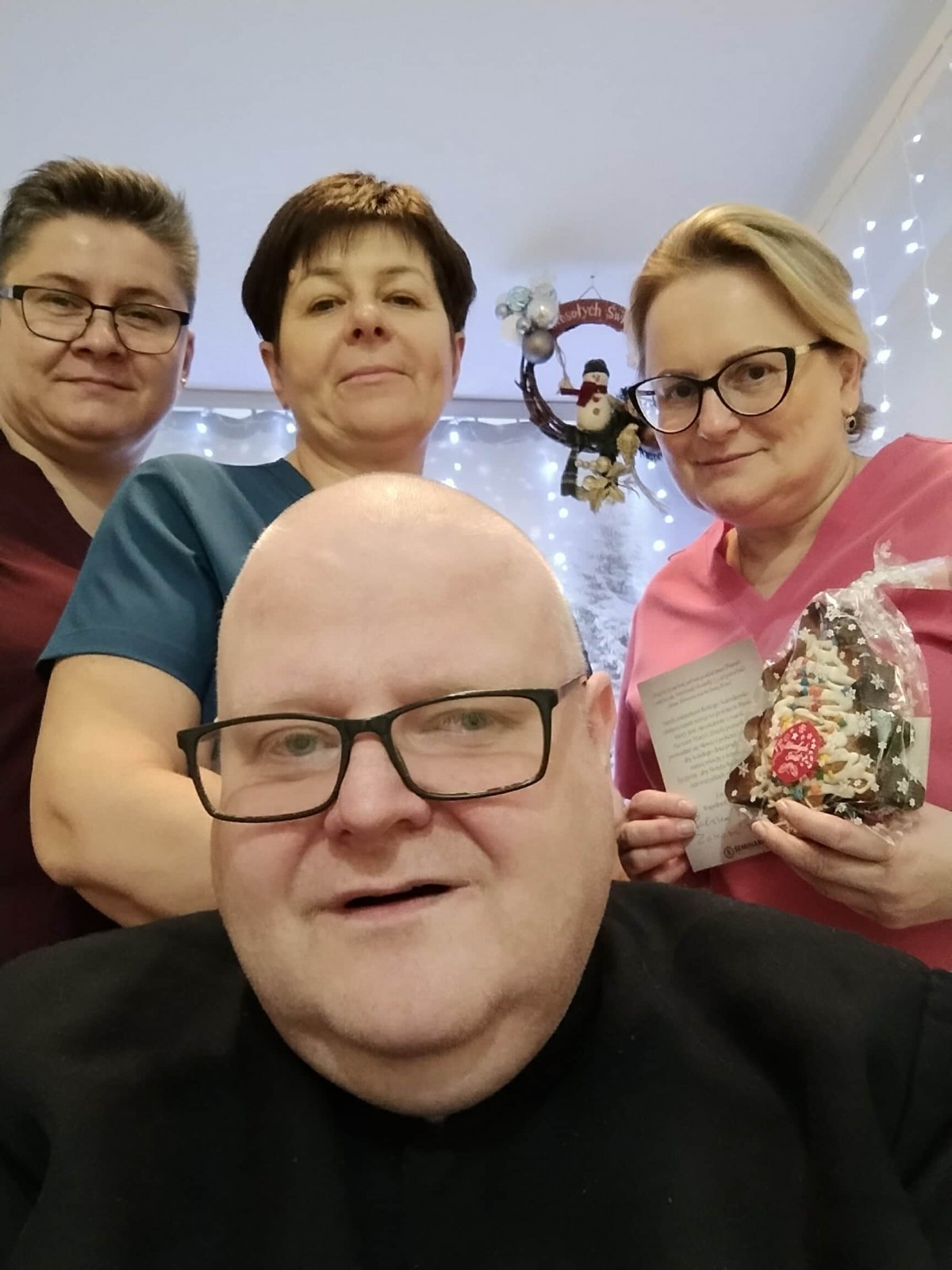 Dzień przed wigilią br. Wiesław, który mieszka w Kamiliańskim Ośrodku Opiekuńczo-Leczniczym w Hutkach, odwiedził wszystkie oddziały i inne miejsca z życzeniami i małymi upominkami, by złożyć świąteczne życzenia wszystkim mieszkańcom ośrodka.