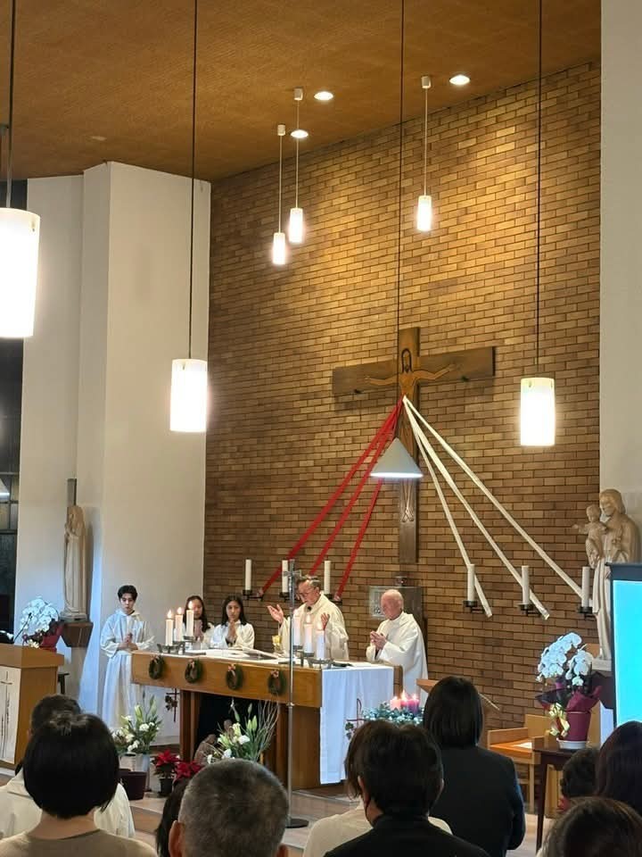 Uroczystej Mszy Świętej przewodniczył bp Paulo Otsuka Yoshinao, który wraz ze wspólnotą dziękował za osiem dekad edukacji i misji pijarskiej. W uroczystości wzięli udział przedstawiciele lokalnych władz, absolwenci szkoły, salezjanie oraz współbracia pijarzy w tym o. Miguel Artola Przełożony Prowincjalny oraz o. Adam Kurzak Rektor Kolegium i Przełożony Wspólnoty w Yokkaichi.