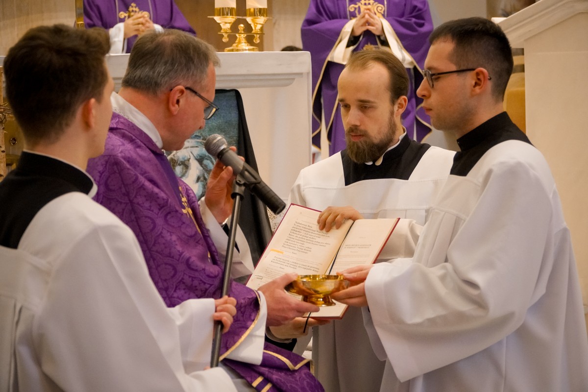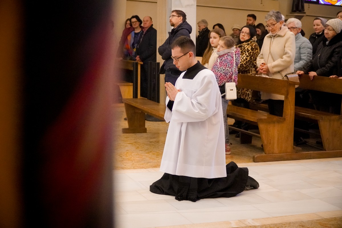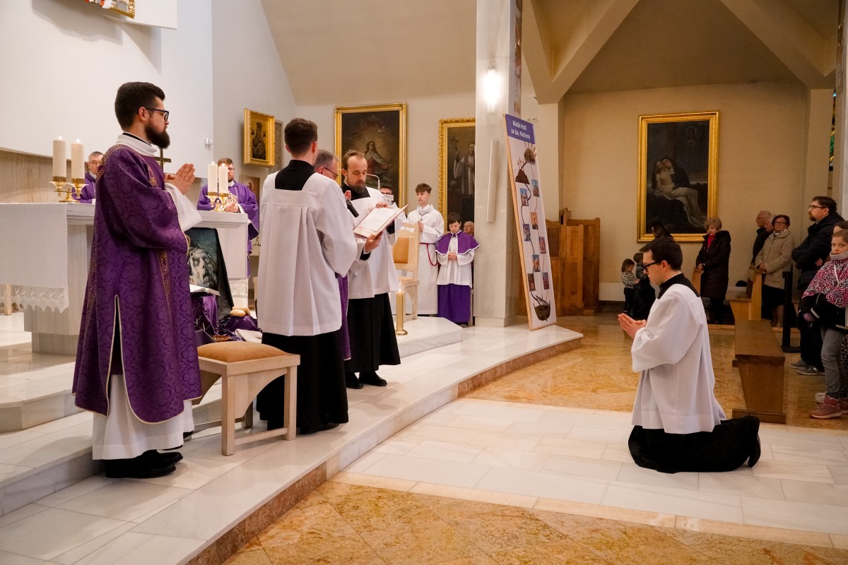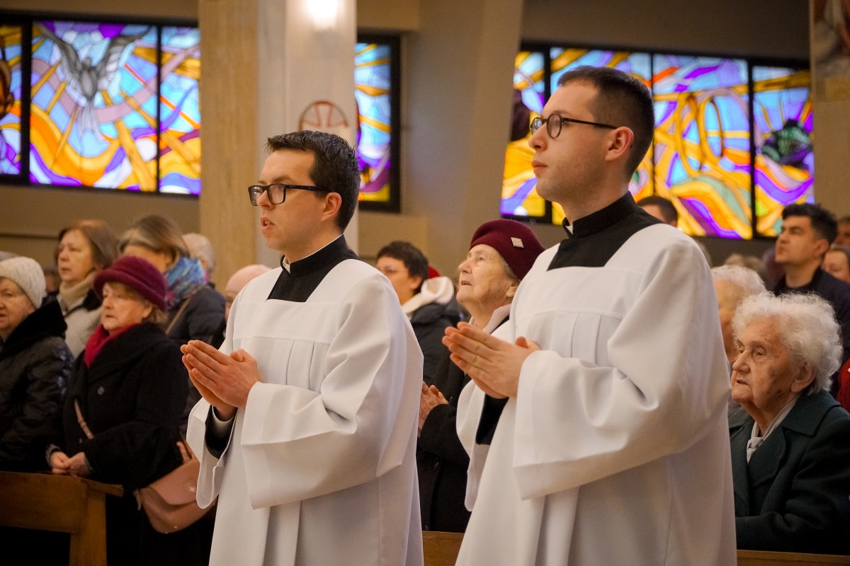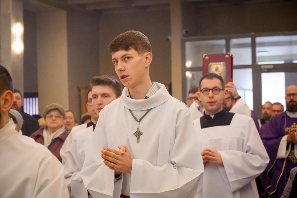 – Bóg nas wezwał stosownie do naszego powołania – mówił podczas kazania o. Mateusz Pindelski, Prowincjał Zakonu Pijarów, podczas Eucharystii, w trakcie której zostały udzielone posługi akolitatu kl. Dominikowi od Krzyża i lektoratu kl. Jarosławowi od Matki Bożej Niezawodnej Nadziei 1 marca 2026 r. w Krakowie na Rakowicach.