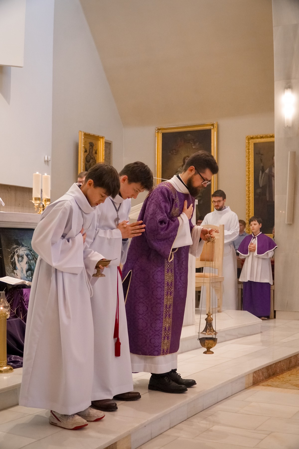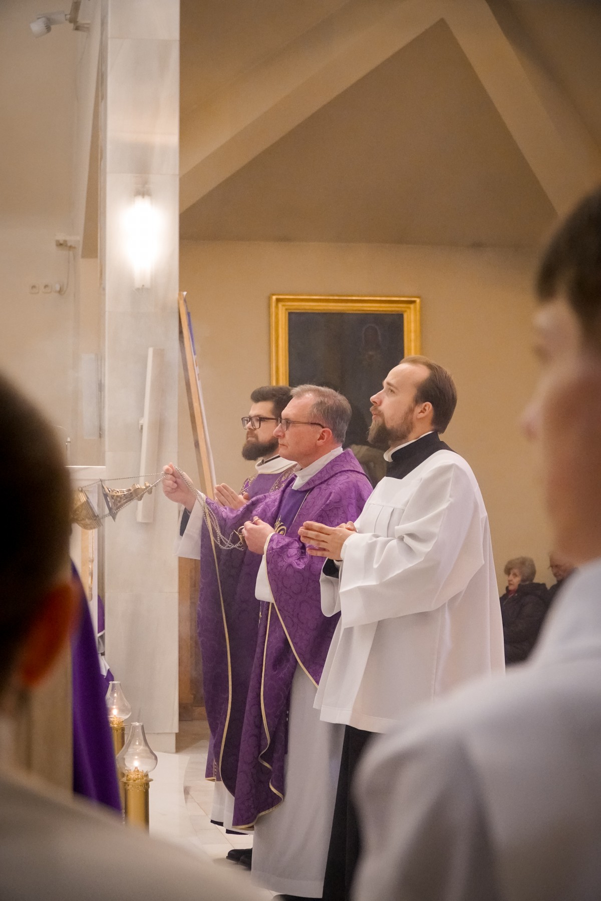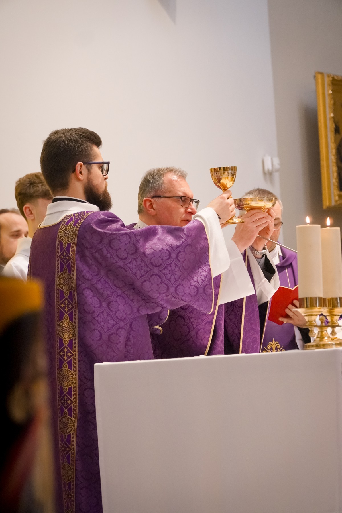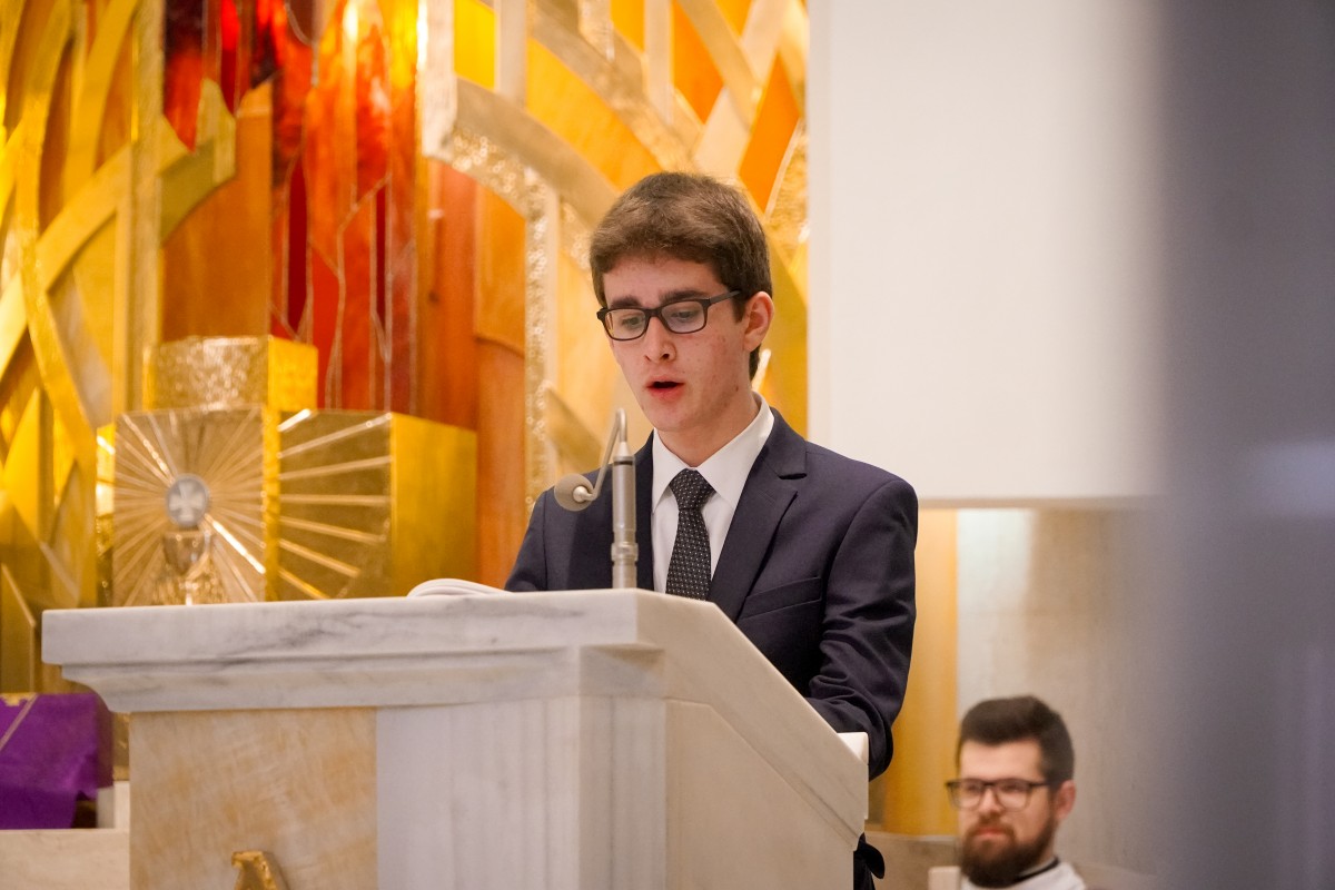 O. Prowincjał podczas kazania podkreślił, że Wielki Post to czas, by za św. Pawłem wziąć udział w trudach i przeciwnościach. Takie trudny dnia mamy na co dzień, by znosić je każdego dnia, a dodatkowo znosić je dla Ewangelii, by budować nasze relacje małżeńskie, rodzicielskie, pomiędzy pokoleniami. – Trzeba podjąć wysiłek, by wejść na górę Tabor – podjąć wyrzeczenia na czas Wielkiego Postu – postanowienia, zadośćuczynienia – mówił o. Mateusz. – Podczas spotkania z Mojżeszem i Eliaszem – o których usłyszeliśmy podczas Ewangelii – Jezus przygotowuje się, by zostać sam na krzyżu – weźmie udział w trudach i przeciwnościach, by służyć innym – dodaje o. Prowincjał. – Bóg nas wybawił i wezwał stosownie do naszego powołania. Tak jak dzisiaj wezwał kl. Dominika i kl. Jarosława. Z łaską Bożą otrzymują łaskę głoszenia Słowa Bożego, czytania, formowania, która dana jest w sakramentach.
