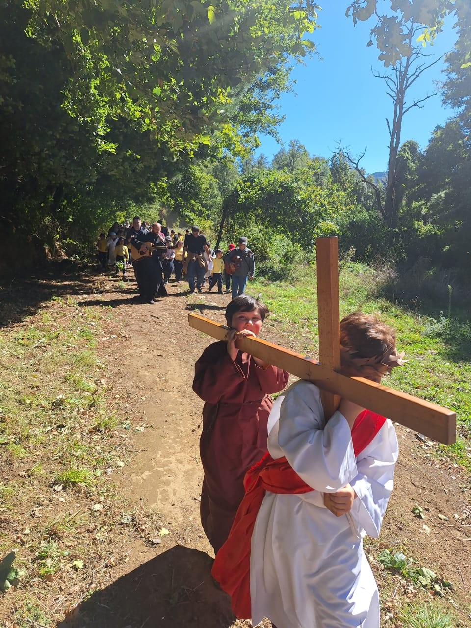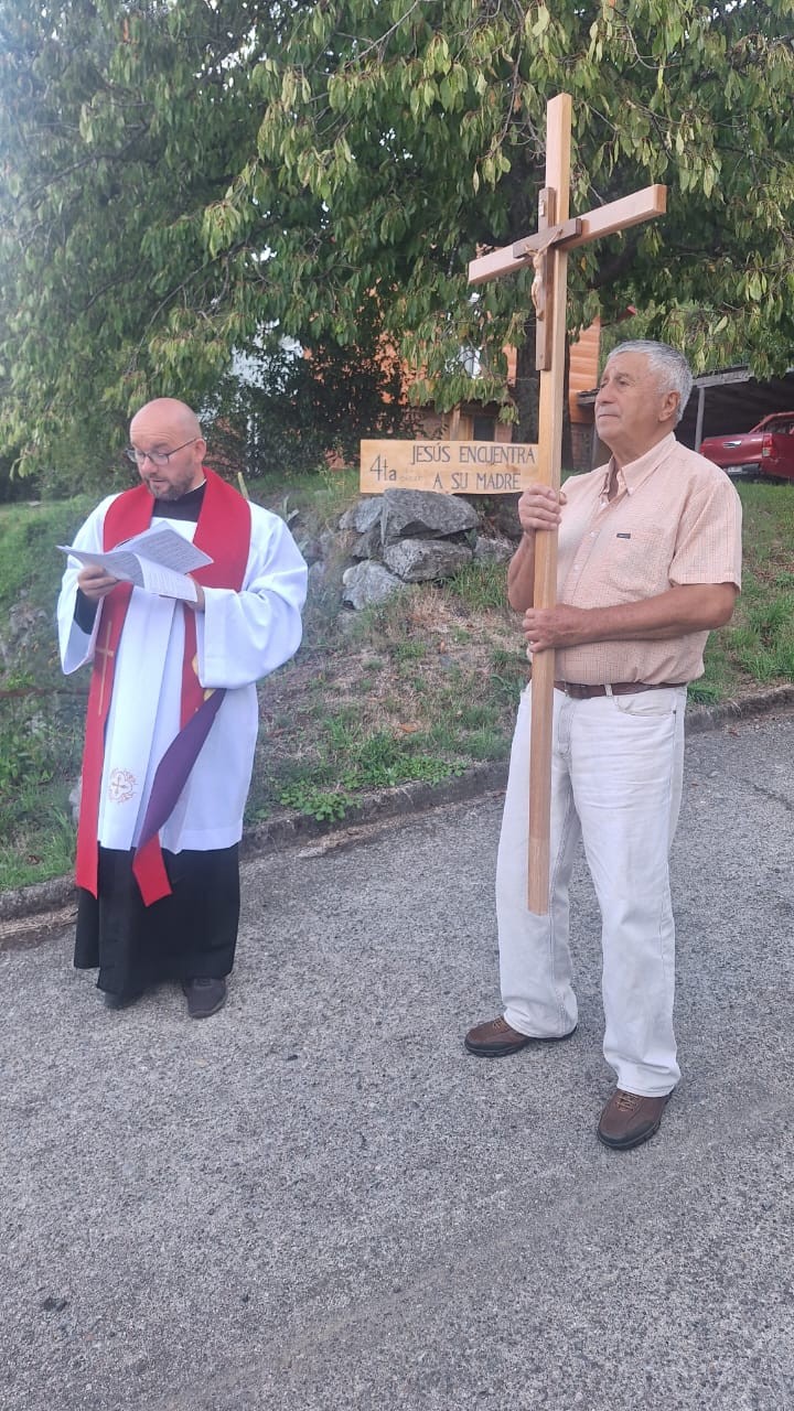 Nasza parafia w Curarrehue ma obowiązek i przywilej organizowania w pierwszą niedzielę marca Mszy Świętej przy krzyżu na granicy z Argentyną. Jest to zwyczaj od 1950 roku i jest dużym przedsięwzięciem. Trzeba zorganizować nagłośnienie, prąd, ołtarz, toalety. Przychodzi ponad 1000 osób. Od Centrum Curarrehue jest to ok 45 km . Droga jest asfaltowa, ale bardzo kręta i stroma. Przejście graniczne jest usytuowane u podnóża wulkanu o nazwie Lanin (3700 m npm) i jest tylko dla samochodów osobowych i autokarów, ale bez samochodów ciężarowych. Wokół krzyża rosną araukarie, czyli typowe stare drzewa tubylcze, dające jadalne owoce, coś w rodzaju żołędzi, ale o większych rozmiarach. Stanowią jeden z podstawowych produktów żywieniowych w tym regionie.