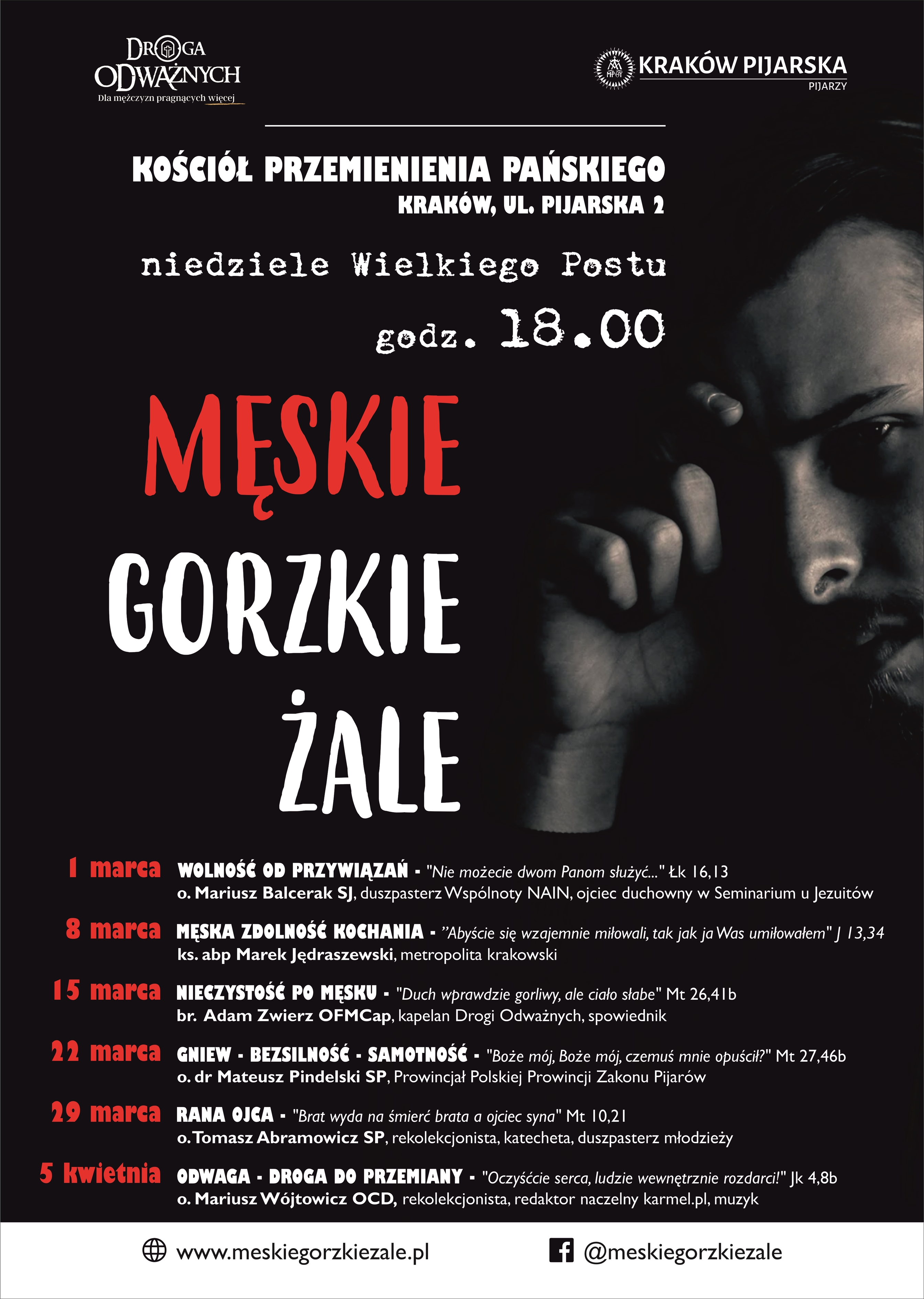 Więcej informacji znaleźć można na stronie: www.meskiegorzkiezale.pl oraz na wydarzeniu na Facebooku - Męskie Gorzkie Żale - Kraków